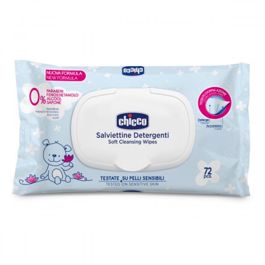 Thanks to their soft texture, Chicco wipes gently cleanse and moisturise baby’s sensitive skin. The formula, with aloe and chamomile, is ideal both for nappy change and to clean baby’s hands and face. – Double action fabric – 0% alcohol